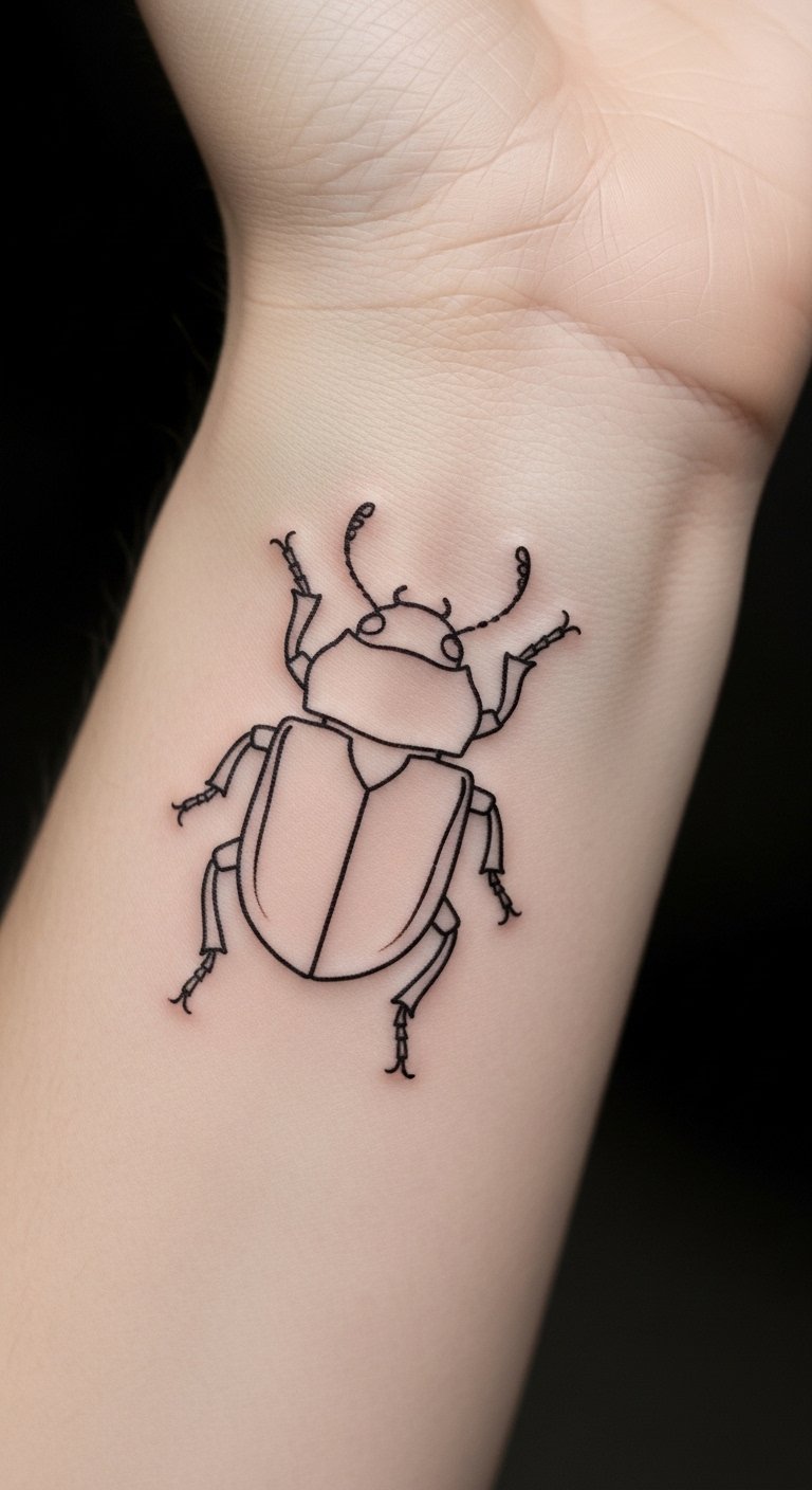 A minimalist beetle outline keeps things clean and subtle. It shows transformation without much fuss.