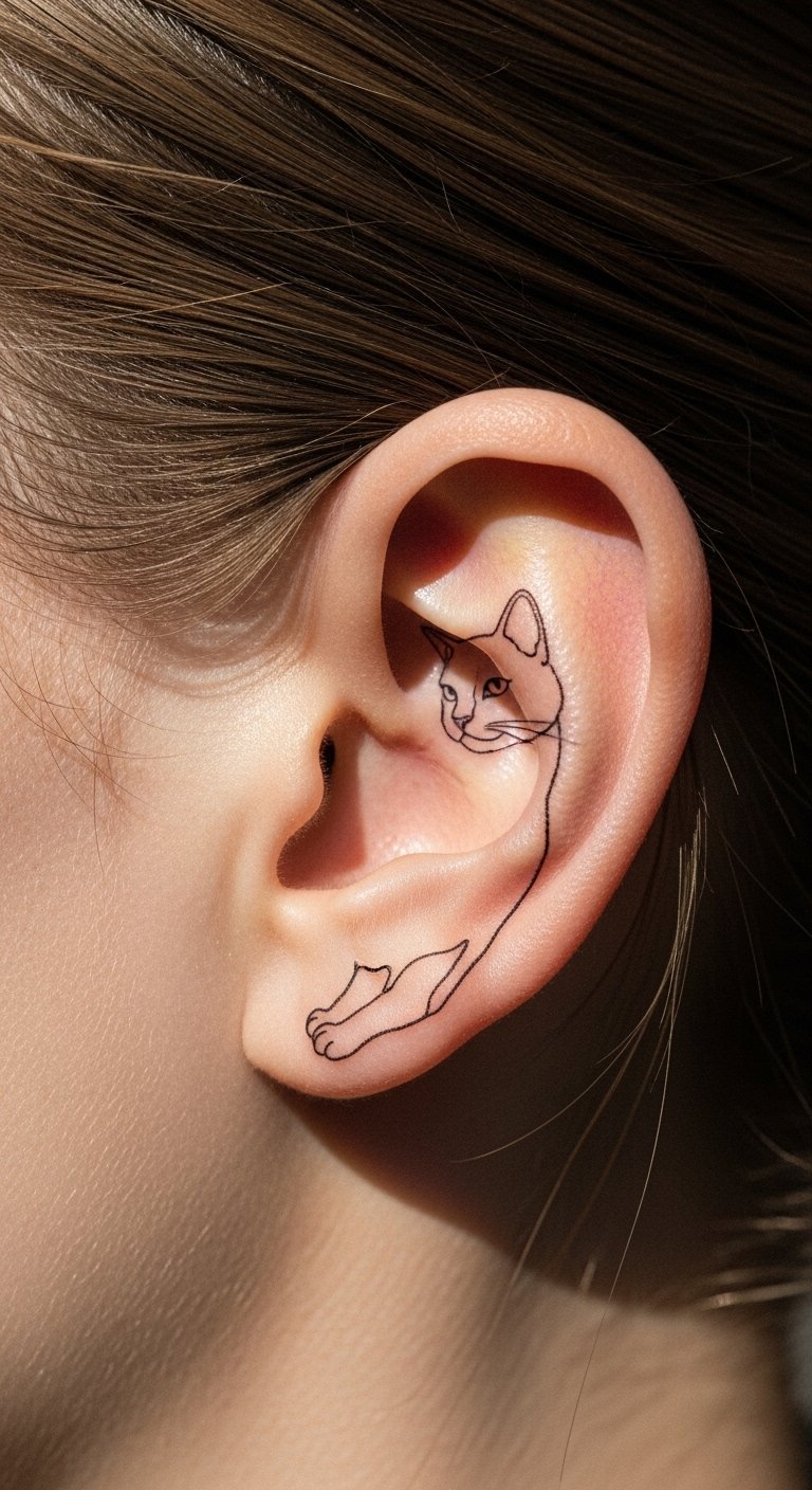 Animals in fine lines add whimsy. Choose a cat or pet outline. Quick tip: trace on a mirror. It fits the space. Budget: get animal stencils online free. Opt for thin black lines. Check for package deals. Hide with hair styles. DIY: use fine-tip pens at home; it costs nothing. Pick clear animals for clarity.