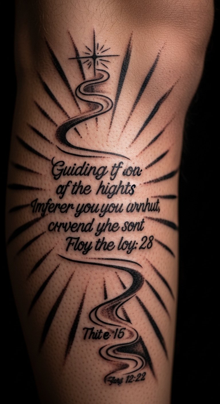 Psalm 23:4 brings comfort in shadows. It shows you’re not alone in fear. Try it on your back for a hidden spot. Opt for grey shades to cut expenses. Look for artists at community events for lower prices. Draw it with a pen at home as a DIY practice. Apply a temporary tattoo to see how it looks. Pair it with a simple path drawing. This keeps the design understated. Use free online tools to create your layout. Share ideas with family for feedback.