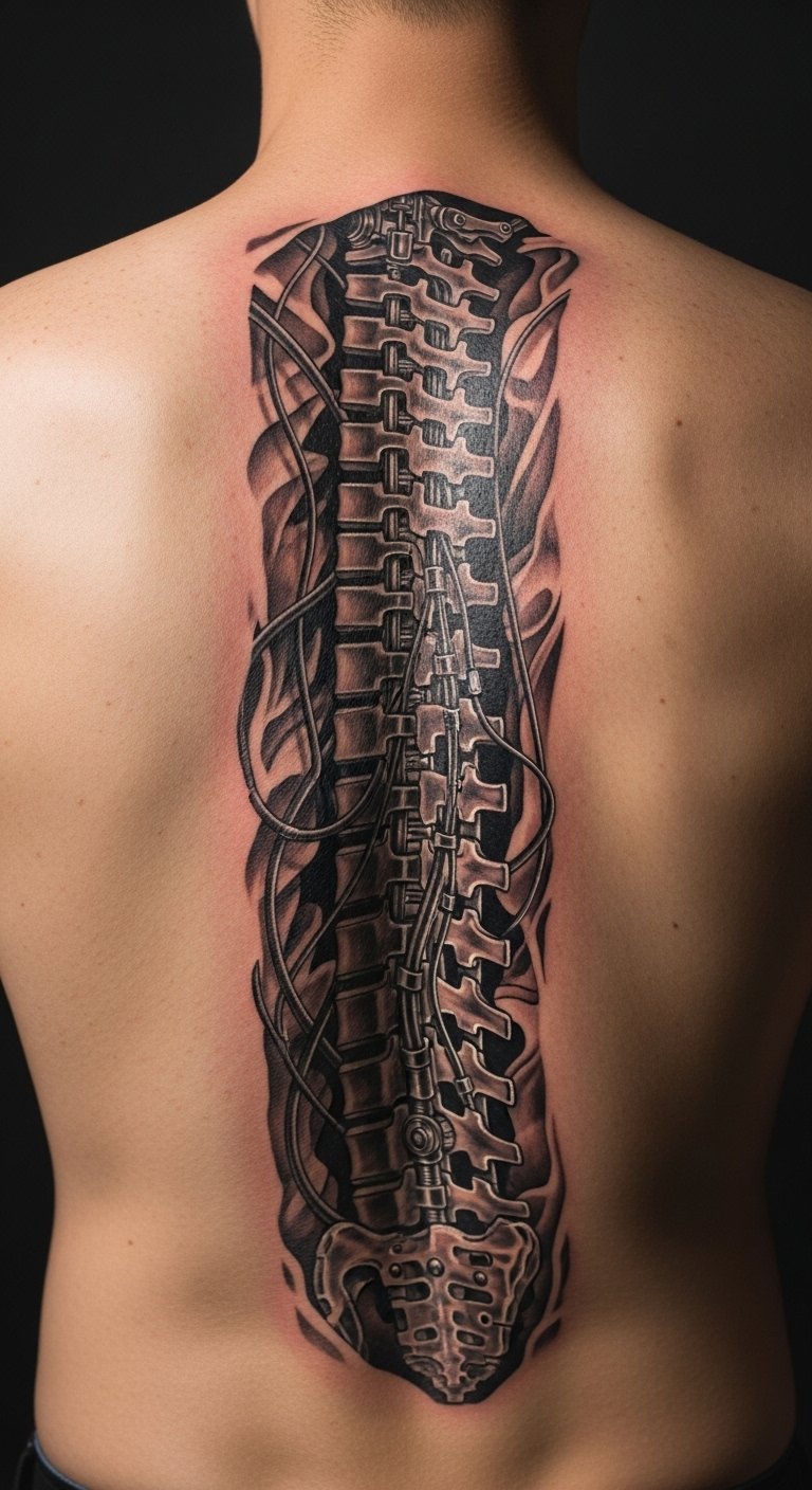 A spinal implant design on your back brings a tech twist to your spine. Grab colored pencils and draw a rough outline on paper. Focus on curves that follow your back. Search for artists in your area who offer deals around $200 for smaller pieces. Break the tattoo into phases to handle time better. Apply numbing cream from a drugstore to cut pain. Add personal touches like family symbols mixed in. This setup works well for larger canvases and hides under clothes.