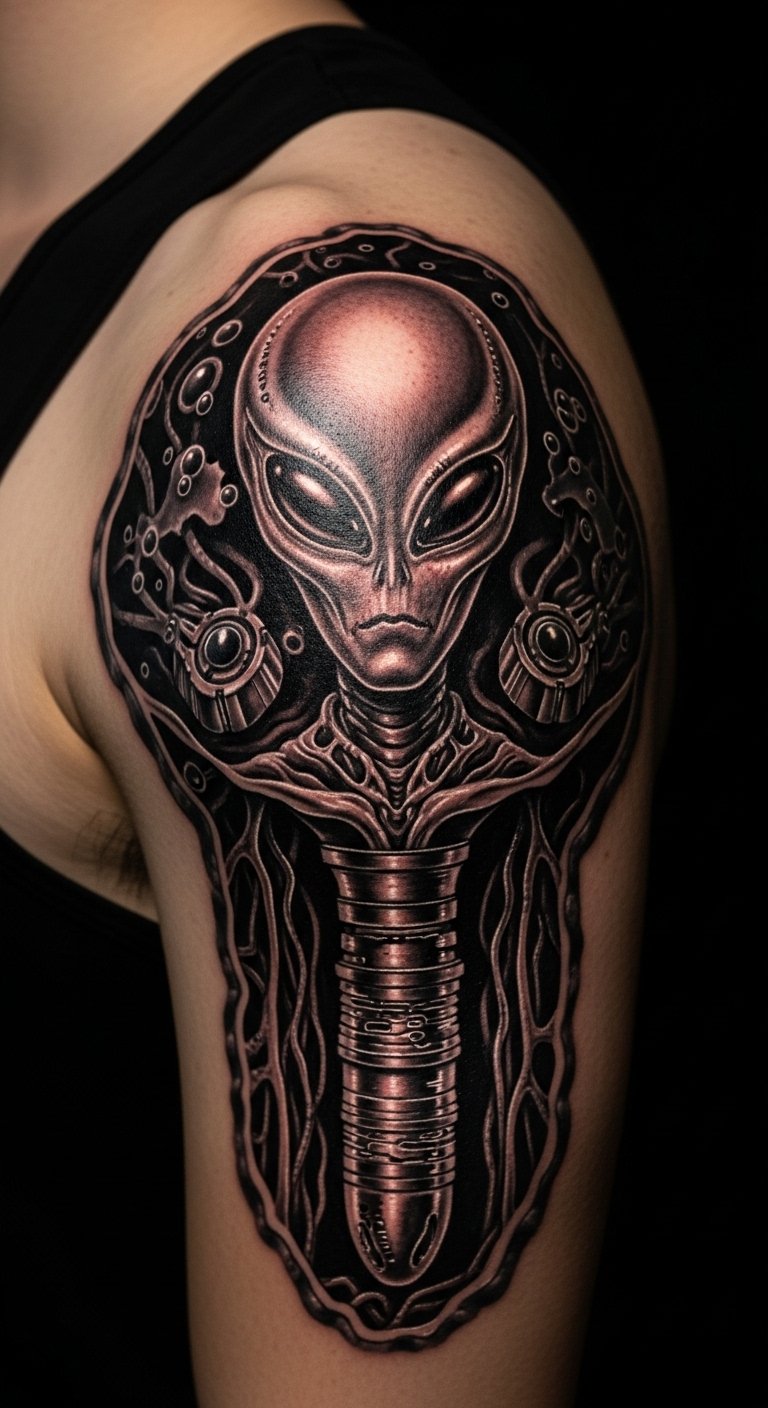 These biomechanical tattoos show how skin can tell a story of tech and humanity. Each idea offers a way to express yourself without breaking the bank. Pick one that speaks to you and connect with an artist today for your own transformation.