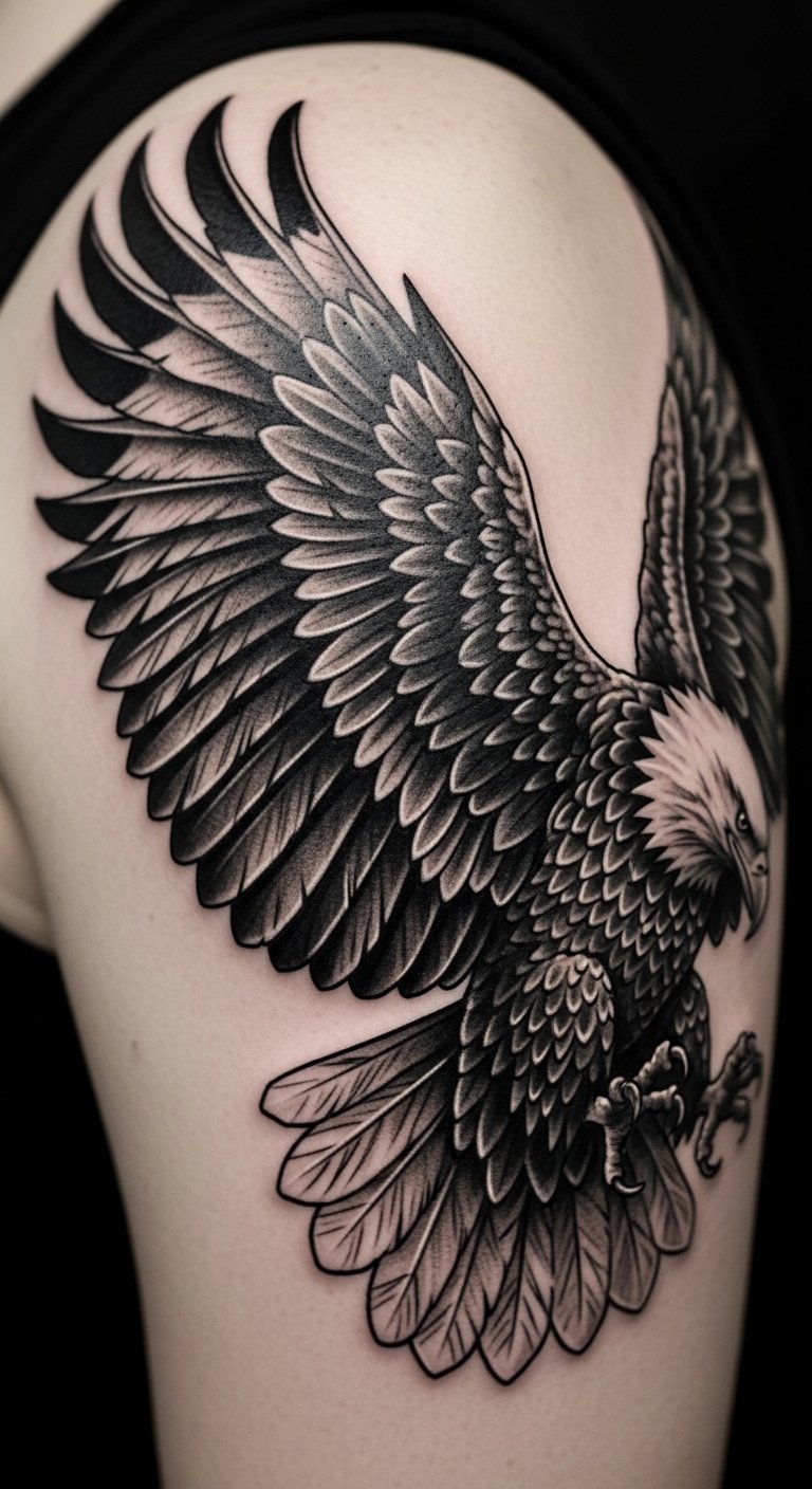 Picture an eagle tattoo spreading its wings across your skin. This design stands for power and freedom. Choose a simple outline for subtlety. Or go bold with realistic feathers.