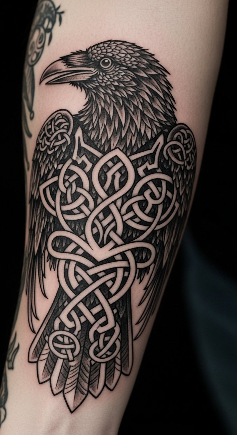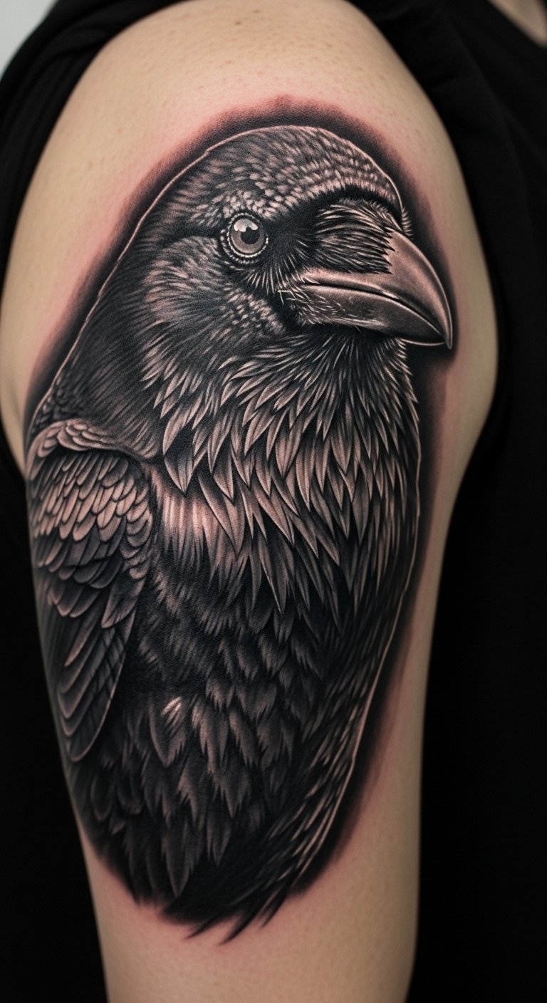 Raven tattoos evoke mystery and smarts. Think of a detailed bird on your arm. It fits gothic styles perfectly.