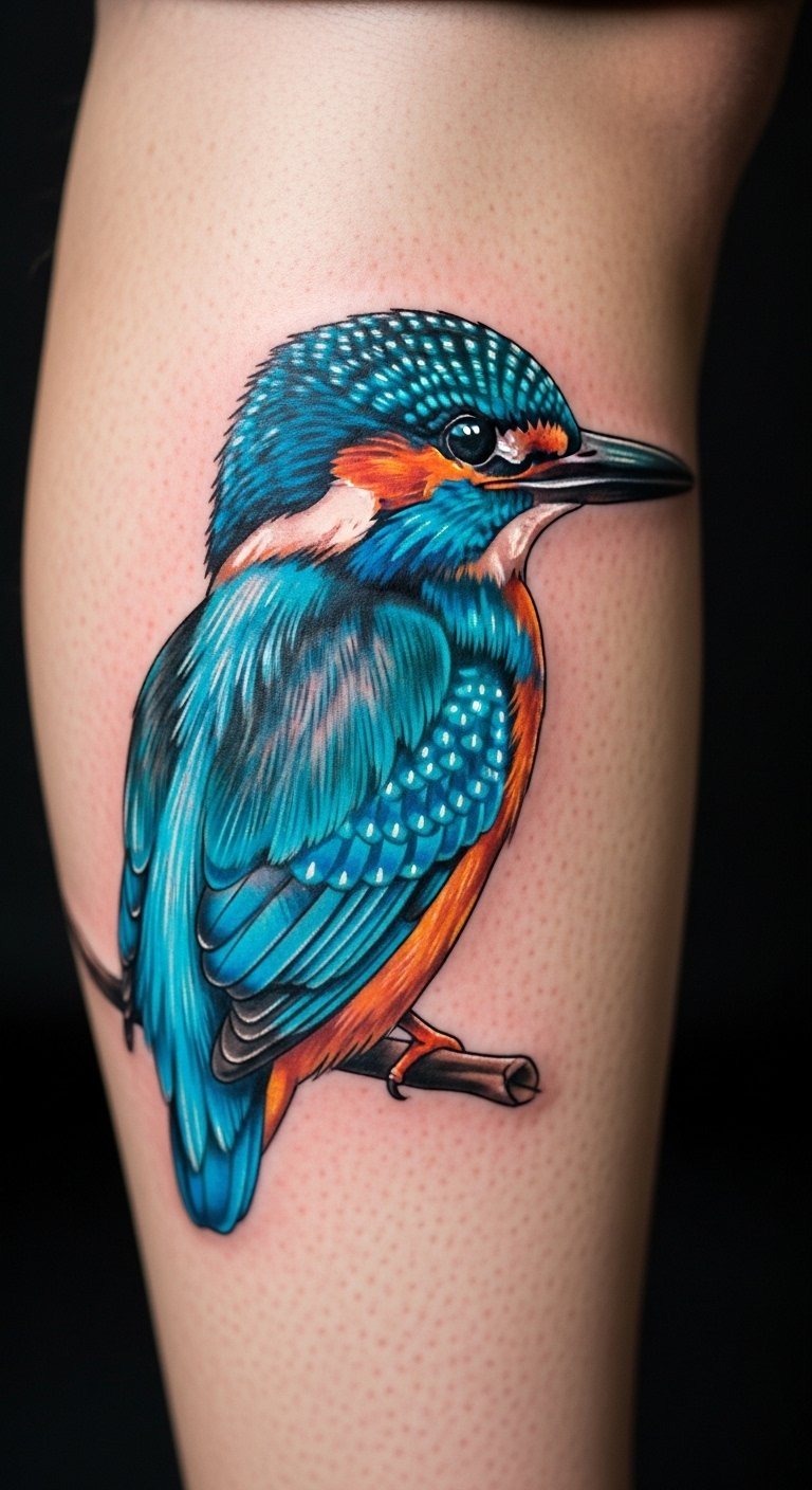 Kingfisher tattoos stand for peace and luck. Envision colorful feathers on your leg. It feels prosperous.