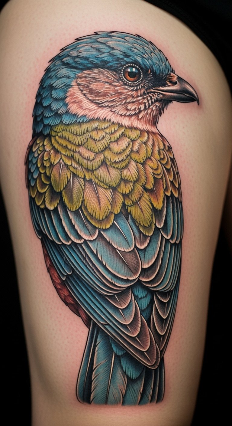 Hyper-realistic bird tattoos look alive. Think of detailed feathers on your thigh. They capture real emotion.