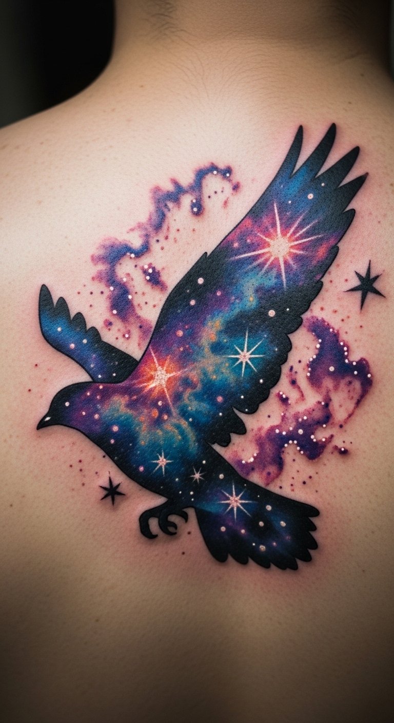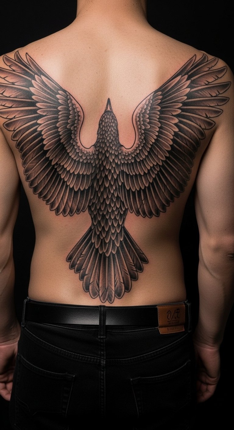 Back bird tattoos make a grand statement. Picture wide wings across your back. They tell big tales.