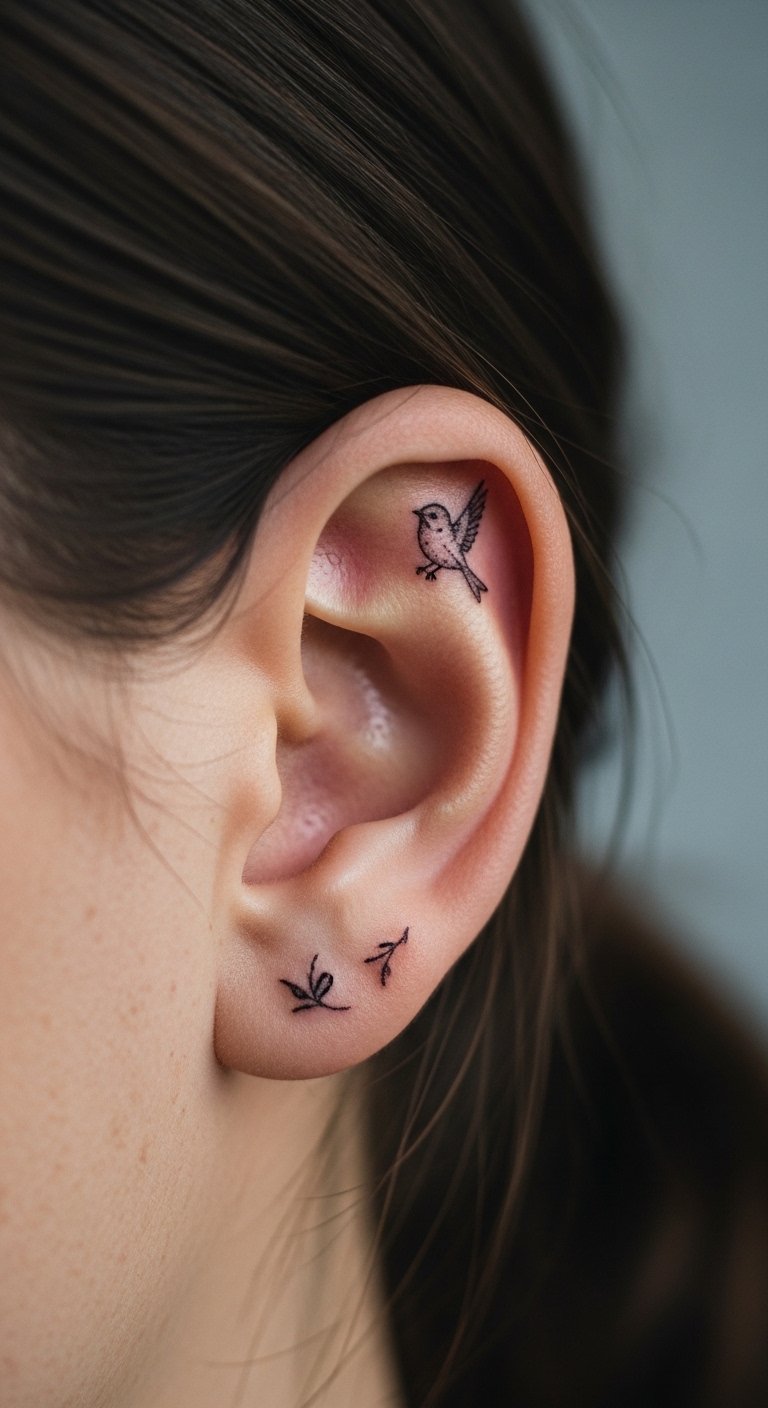 Small bird tattoos fit subtle lives. Think of a tiny bird behind your ear. It’s discreet yet meaningful.