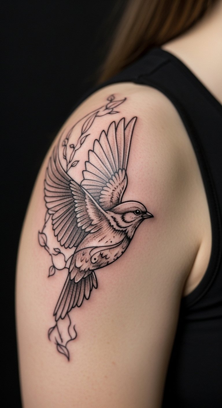 Bird tattoos for growth show journeys. Picture a transforming bird on your shoulder. It’s inspiring.