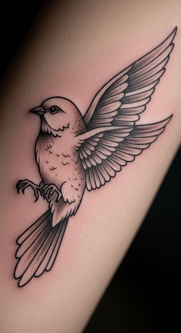 Minimalist bird tattoos keep it sleek and meaningful. Think of a simple shape on your wrist. It says freedom quietly.