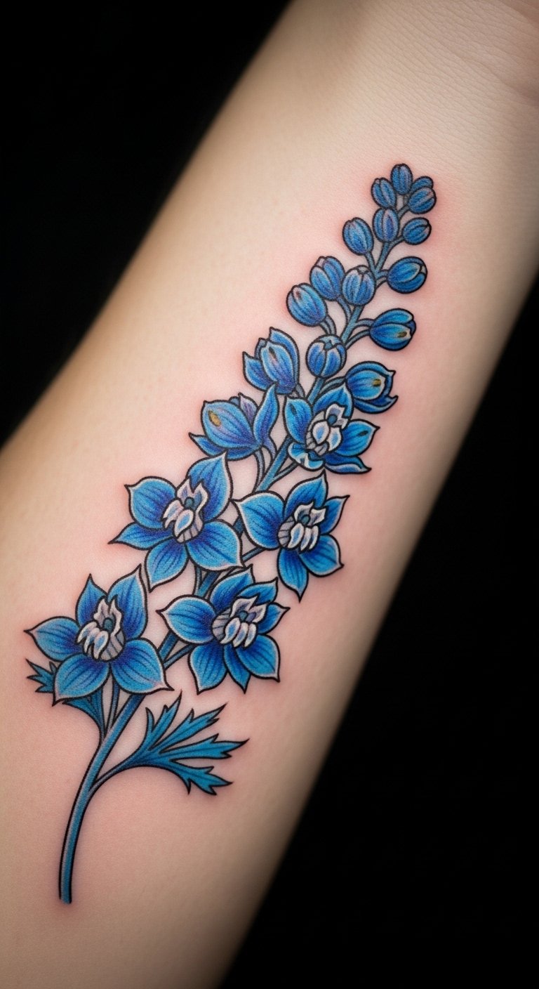 July’s Larkspur Tattoo: Bold Bonds