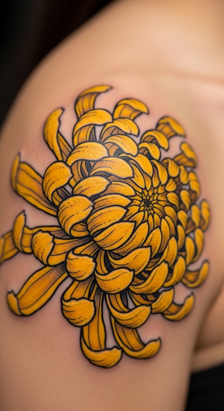 November’s Chrysanthemum Tattoo: Lasting Loyalty