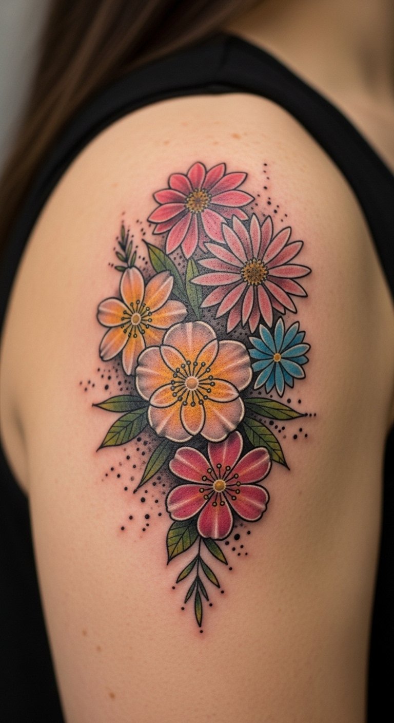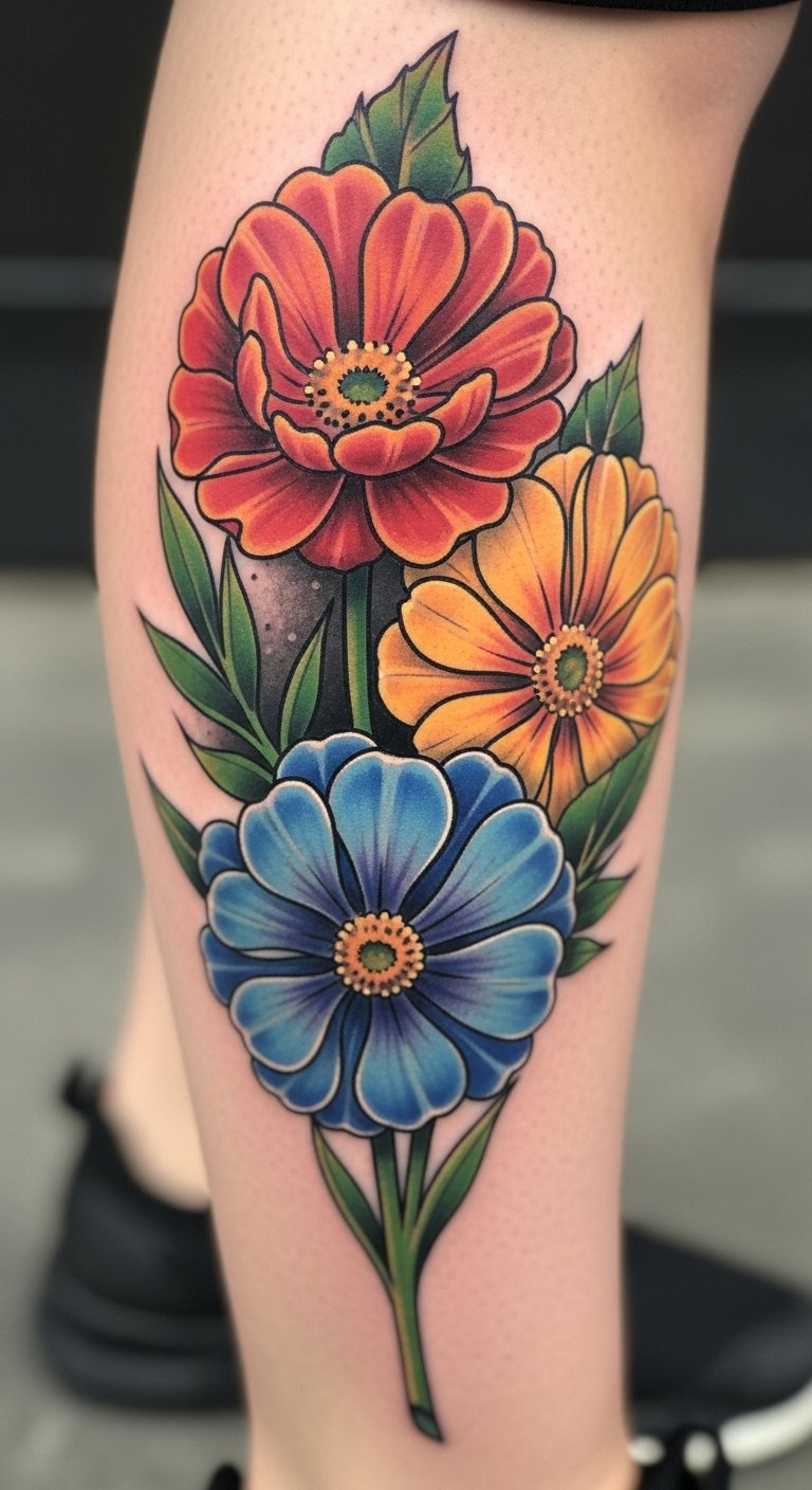 Colorful Birth Flower Tattoo: Vibrant Expressions