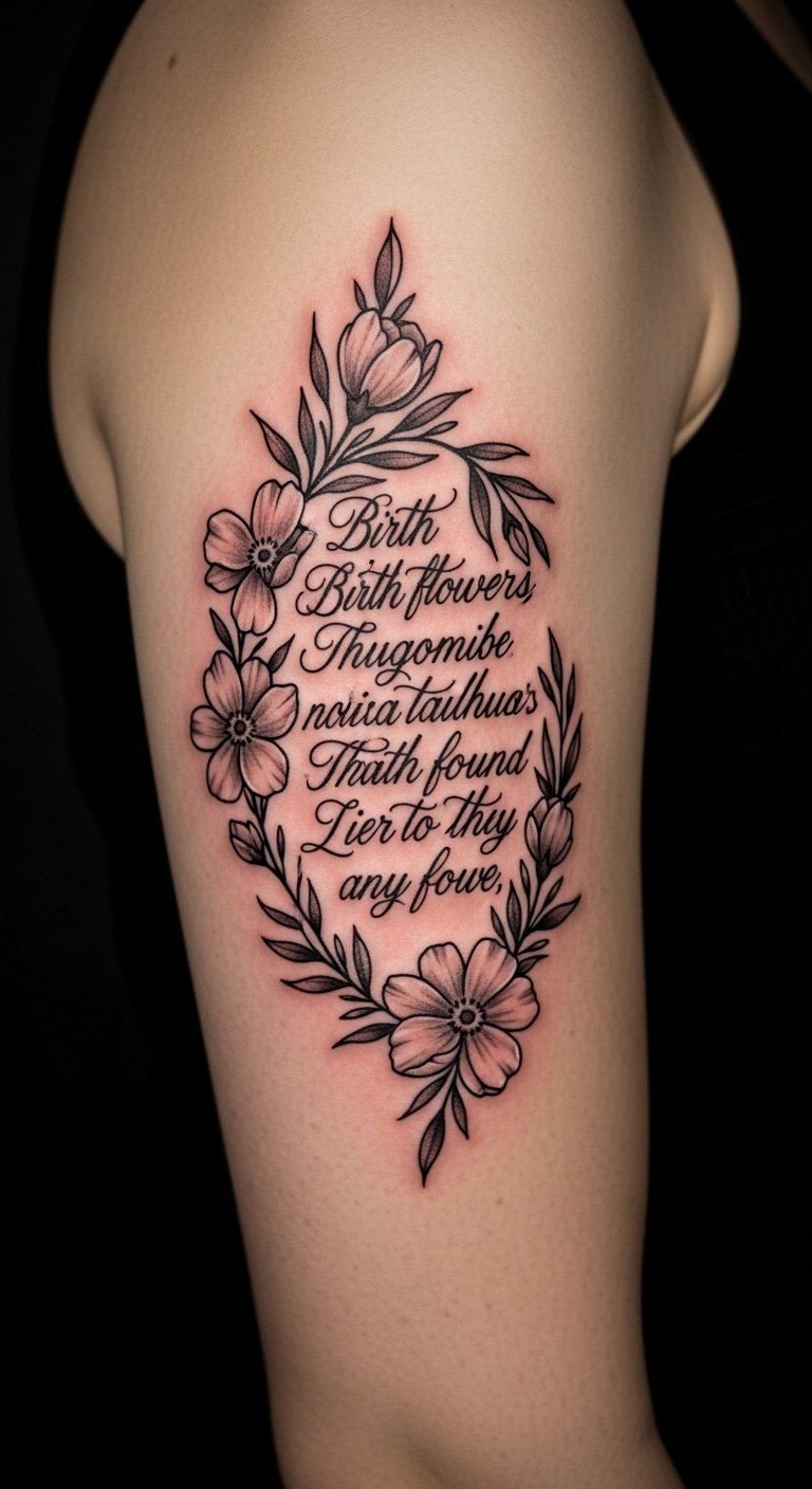 Birth Flower Tattoo with Quotes: Personal Touches