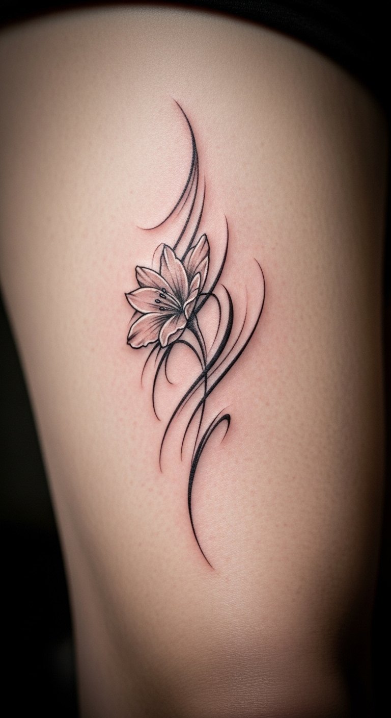 Fine Line Birth Flower Tattoo: Elegant Simplicity