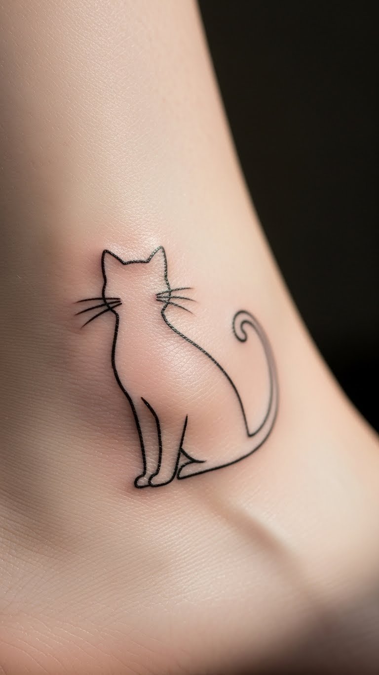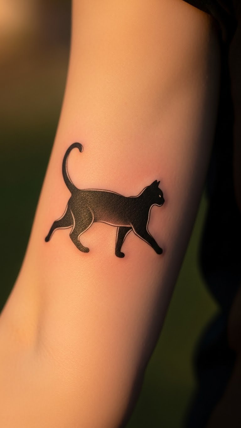 Black cat tattoos with just whiskers and tail keep it understated. Put this on your ankle for subtle charm. Focus on clean lines. Find inspiration from free minimalist sites. Sketch lightly on paper. Use inexpensive transfer paper for trials. Bold key: subtle cat style. Go for quick sessions at local spots. Add tiny elements with markers at home. Practice on paper first. This method stays simple and cheap.