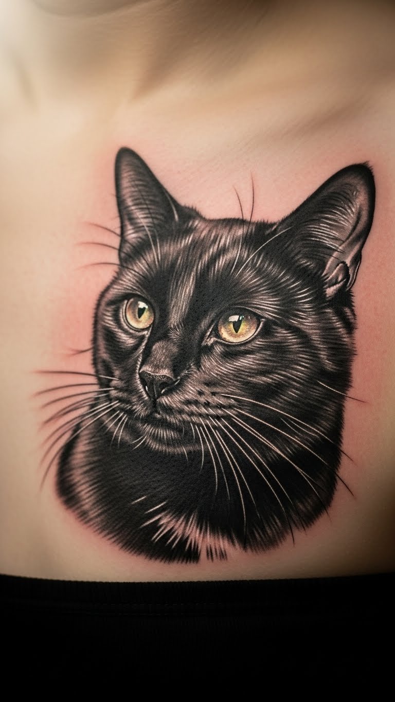Black cat tattoos as pet tributes honor memories. Place on your chest for closeness. This design warms the heart. Use pet photos for inspiration. Sketch from pictures. Try memorial stickers. Bold key: pet honor ink. Find sentimental deals. Add names with markers. Practice drawings. Keep it heartfelt and budget-friendly.