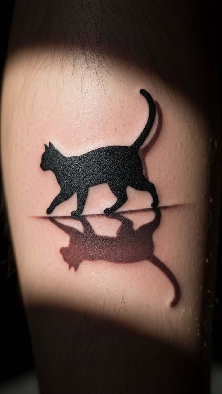 Black cat tattoos with shadows play with light. Try on your calf for effect. This design adds dimension. Find shadow techniques online. Draw shadows on paper. Use shaded stickers. Bold key: shadow depth. Seek light-play deals. Layer with markers. Test at home. Keep it dimensional and low-cost.