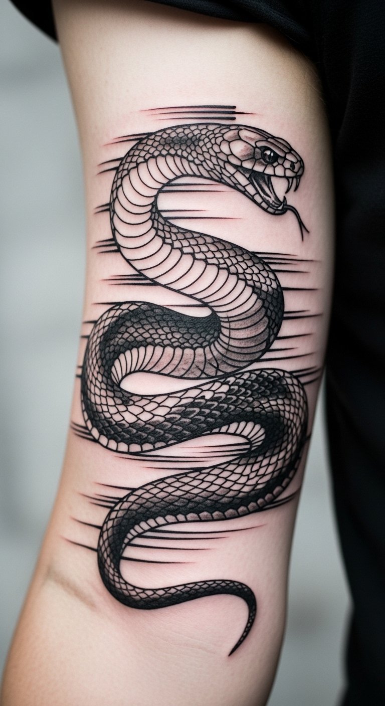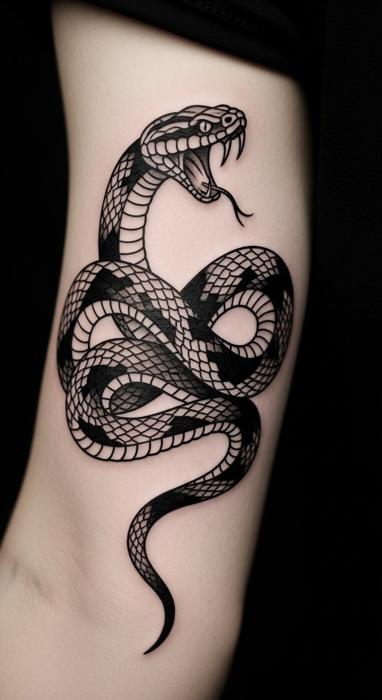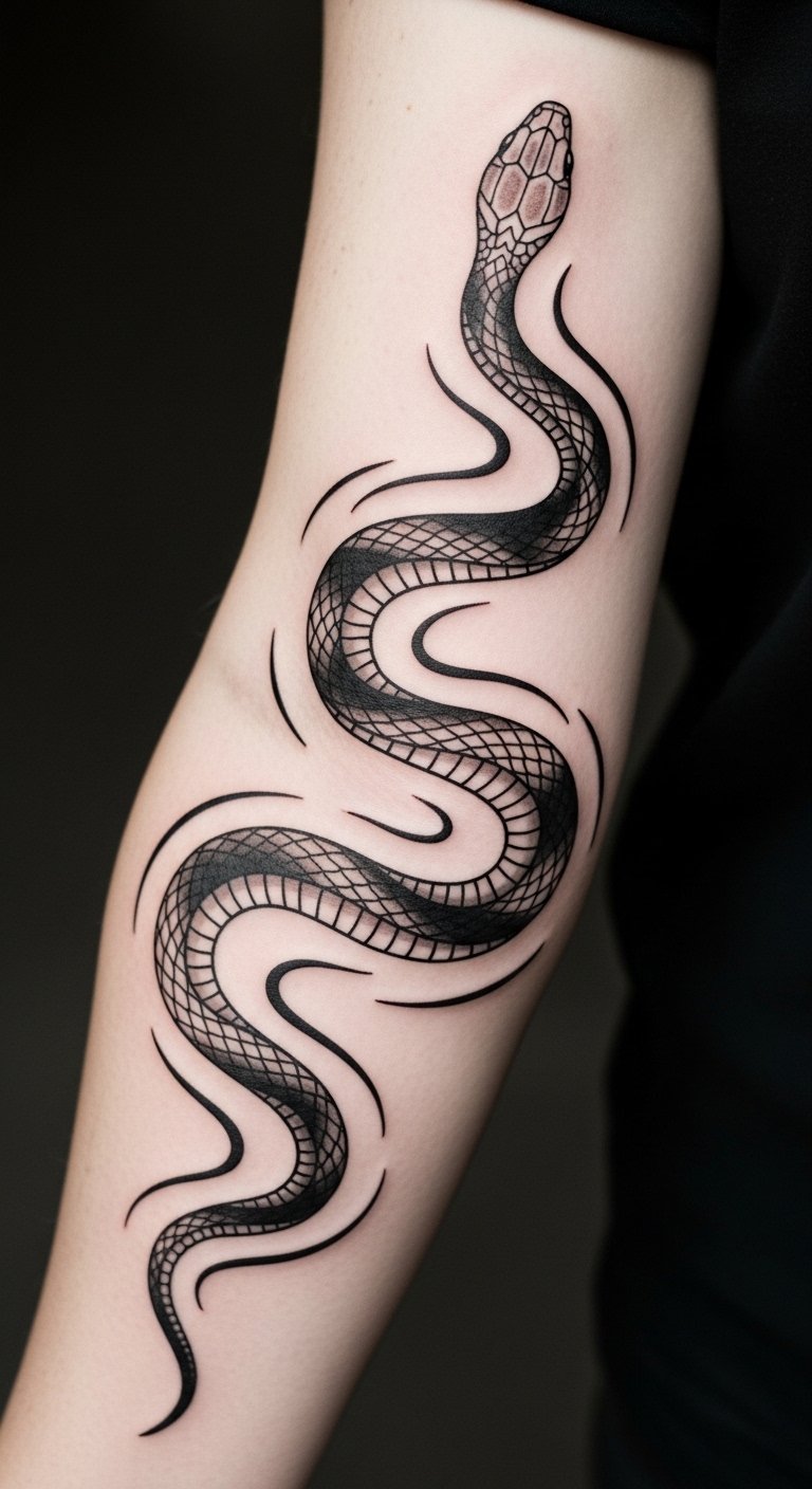 Imagine the snake winding up your arm like armor. It shows agility and speed. Draw a basic wrap on your arm with washable markers first. Check free apps for design ideas. A small version might cost $50 at a walk-in shop.