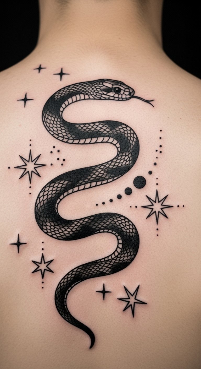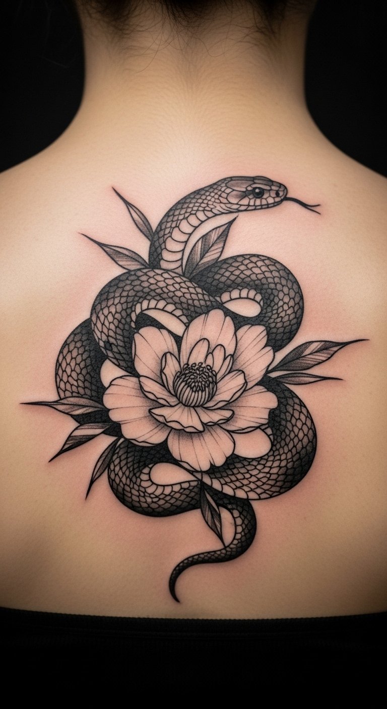 Pair the snake with a flower on your back. It balances beauty and threat. Sketch both on a notebook. Free design sites offer ideas. Try for $80 total.