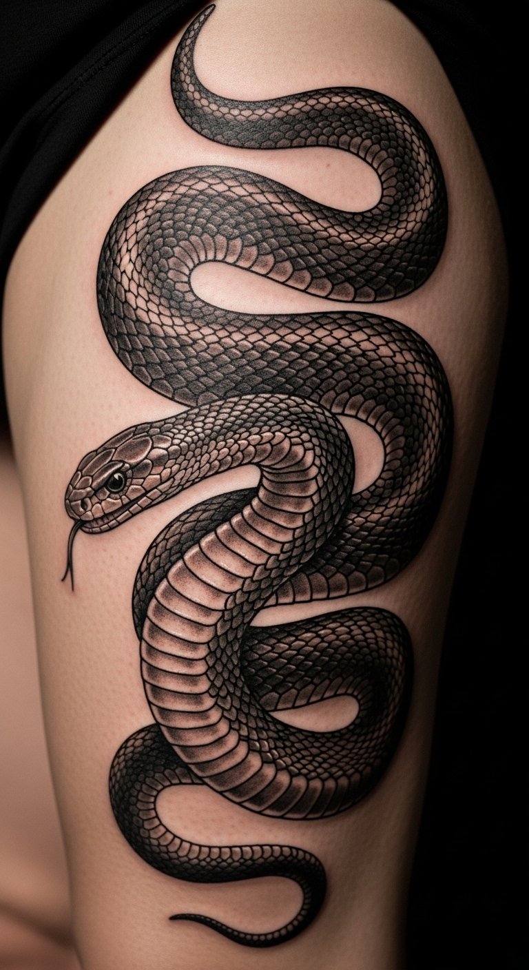 Stretch the snake across your thigh. It signifies independence. Draw it long on paper. Apps provide guides. Budget $50 for small.