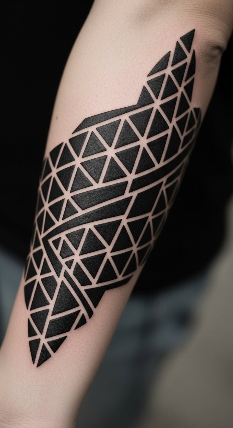 Use shapes on your forearm. Modern edge. Draw angles. Online patterns free. $50 geometric.