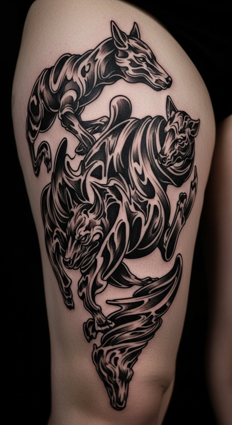 Surreal animals in blackwork twist reality for art. Sketch an animal outline at home. This helps you get creative. Use free animal drawings as a base. Place it where it tells a story. Add details with simple tools. Make it your own with twists. This style stands out easily.