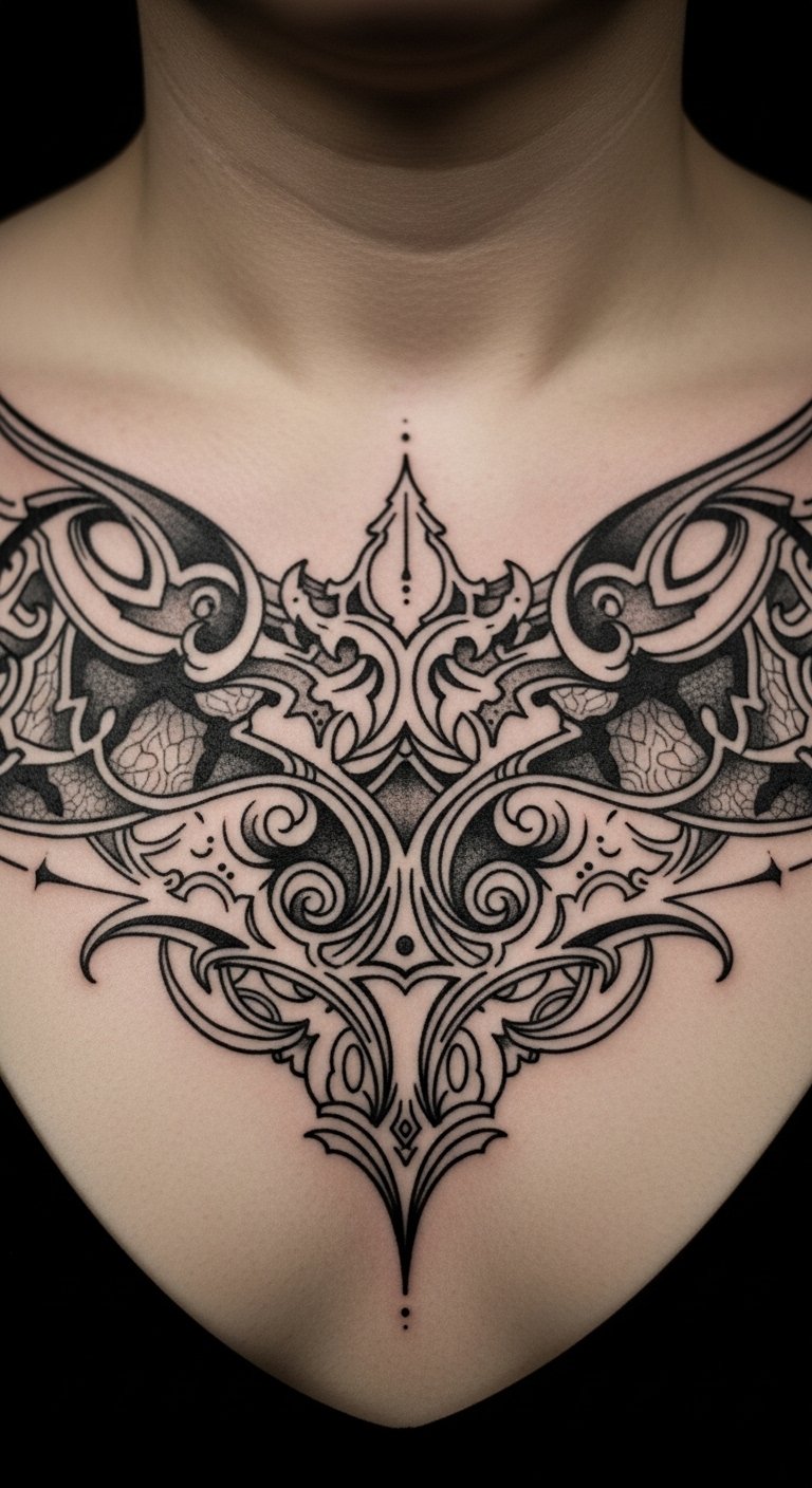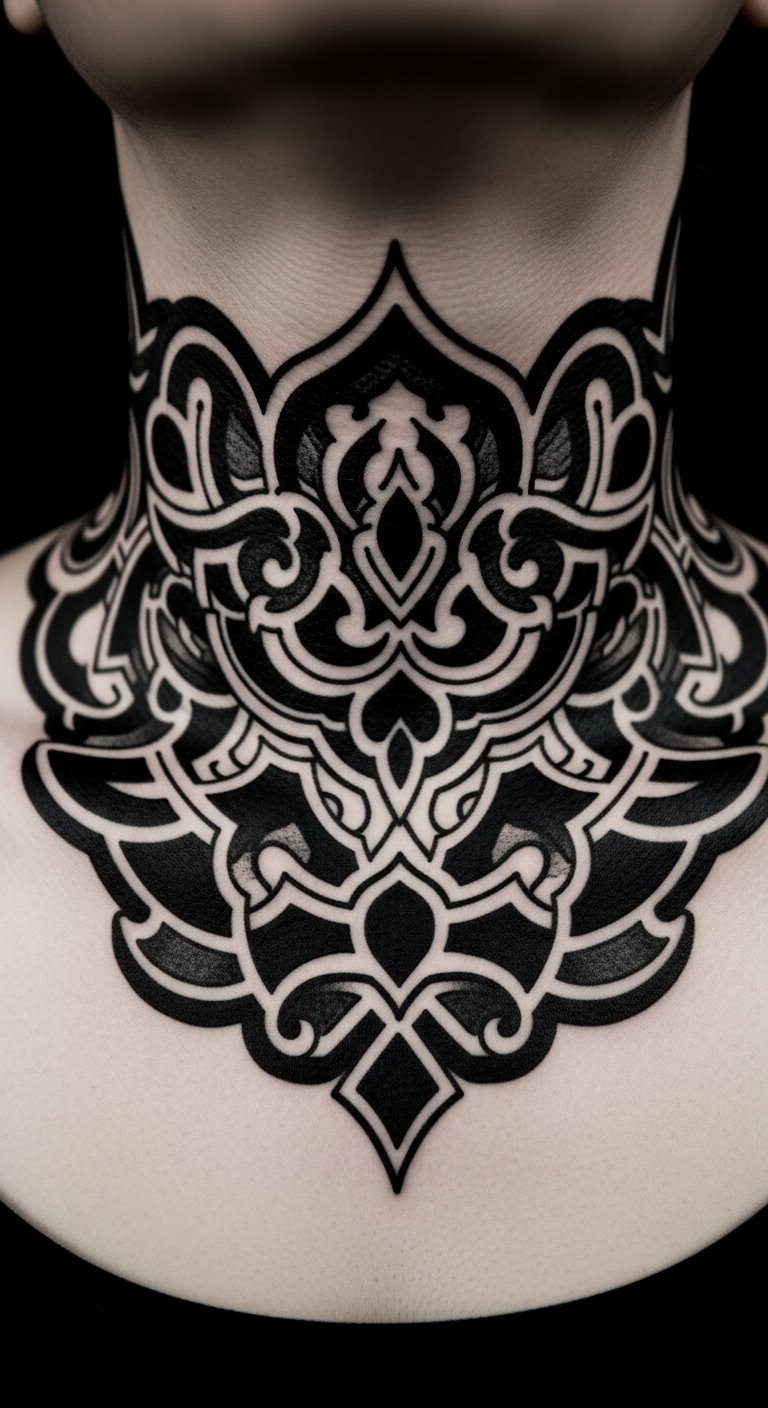 Linework forms the base of blackwork with clean lines. Draw straight lines on paper to practice. This makes the process straightforward. Find free line art online for ideas. Put it on visible spots like your neck. Use a ruler for accuracy in your sketches. Keep lines bold and even. Try combining them with shapes. It’s an easy way to start.