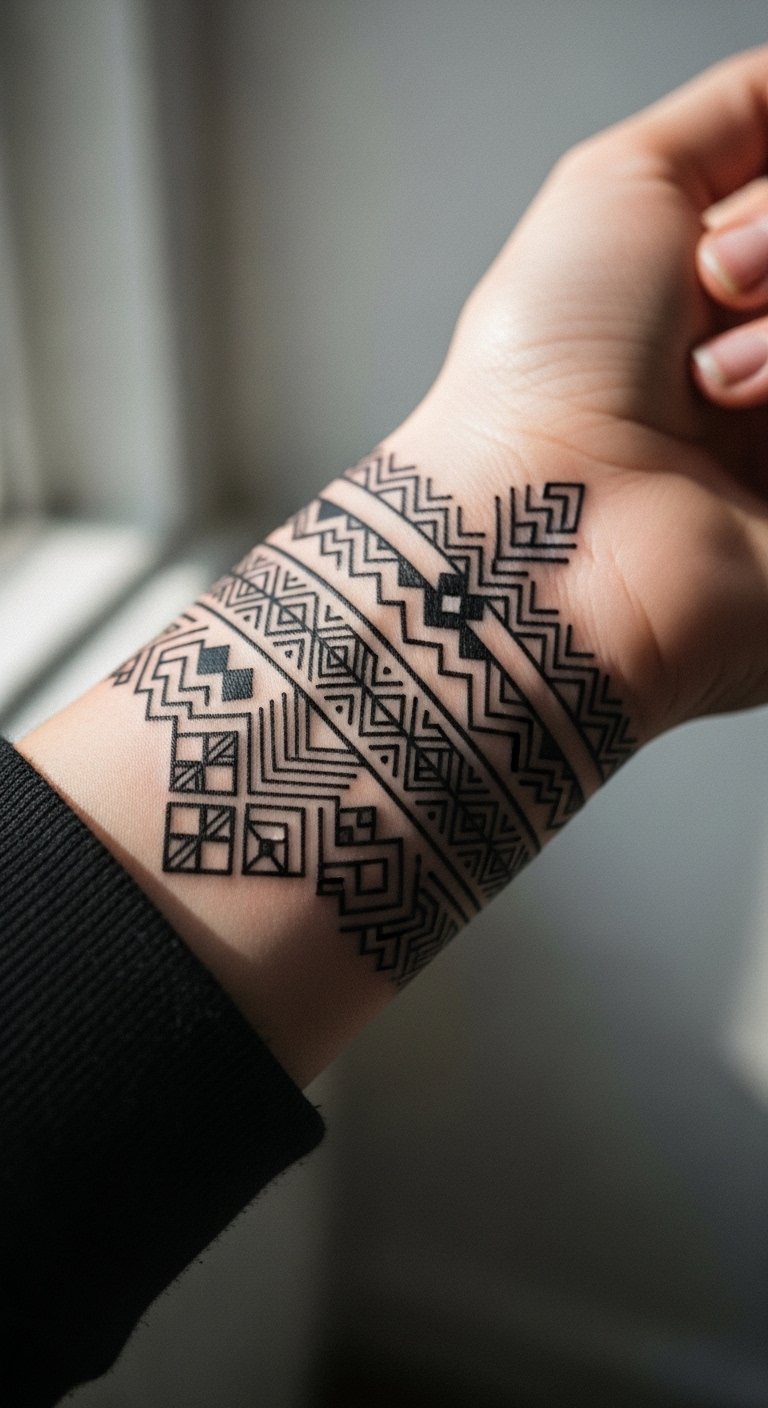 Tribal patterns in blackwork draw from old styles but feel new. Trace a simple band on paper first. This lets you tweak it easily. Look for free tribal inspirations online. Place it on your arm for a strong statement. Use markers to experiment at home. Add your own lines for personalization. Keep it balanced for the best effect. Try drawing it multiple ways. This approach keeps things affordable. It’s great for larger pieces too.