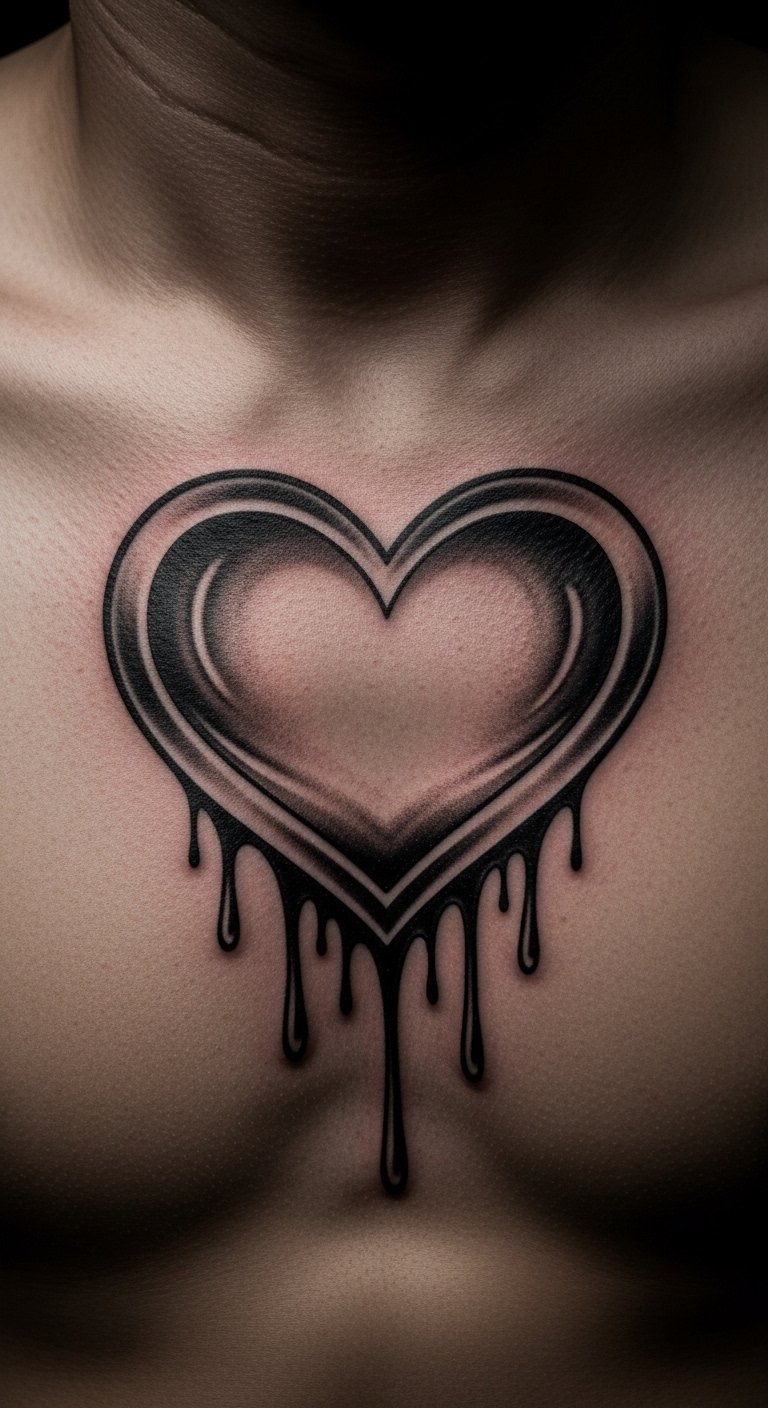 Thick strokes give this heart a powerful edge. Outline with bold markers first. Search for male artists offering discounts, say $80. Use rope to trace lines at home. Focus on the chest for impact. This design stands out with strength.