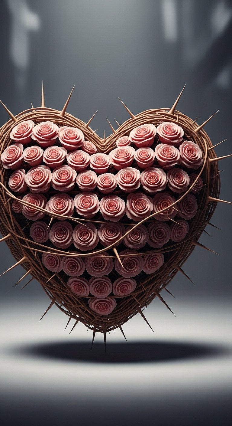 Roses soften the thorns’ edge. Sketch flowers from your garden. Opt for combined designs at $90. Press petals for texture. This mix shows beauty in pain.