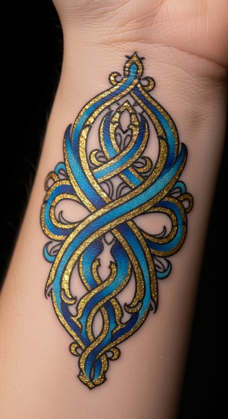 Pair blue with gold for extra flair. Begin with a simple line on your wrist. Look up free combo ideas online. Use metallic markers to practice at home. It won’t cost much. Keep designs balanced for a clean look. Gold adds a nice touch without overwhelming. Find artists who use affordable materials. They can guide you through options. This mix brings a unique edge to your ink.