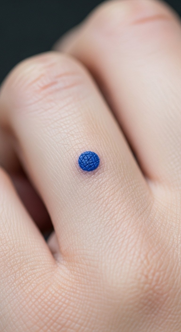 Keep it minimal with just blue dots. Place one on your finger. Search simple templates for free. Draw on your skin with a pen first. This tests the idea quickly. Minimal designs are easy and cheap. Artists charge less for small work. It’s perfect for a subtle addition.