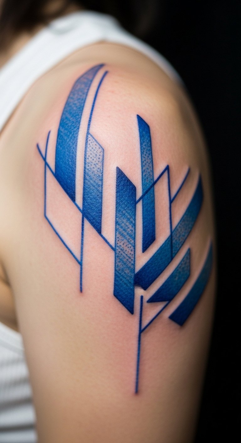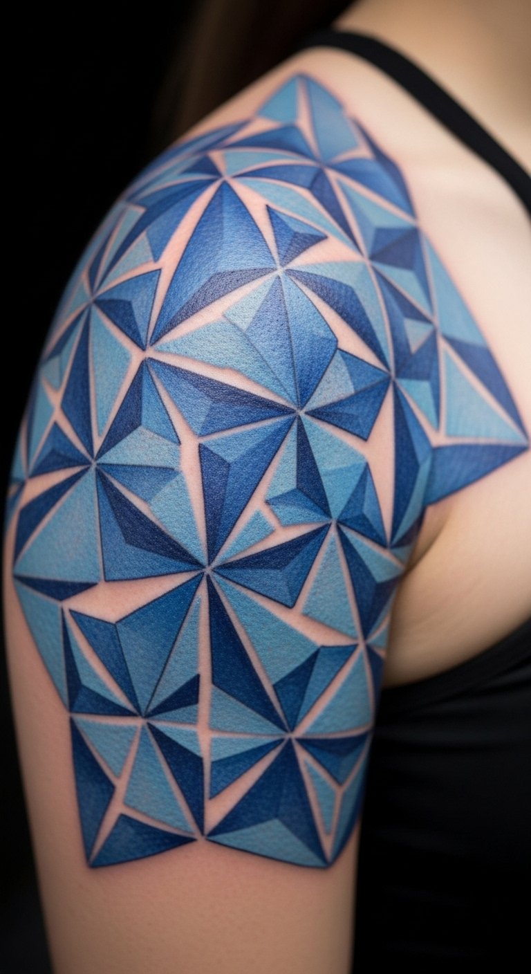 Play with shapes using blue lines. Start with triangles on your shoulder. Get ideas from free geometry sites. Use a ruler and blue pen to plan. It only takes minutes. Build patterns step by step. Local deals make this affordable. You’ll enjoy the modern twist it brings.
