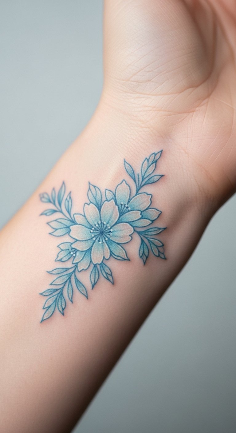Use soft blues for a gentle touch. Pick a flower on your wrist. Get pastel ideas from free sources. Test with light blue markers. This saves money upfront. Layer colors carefully. Look for artist promotions. It’s ideal for a calm style.