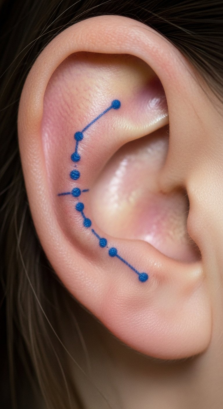 Ease into blue with dots. Put one on your ear. Check beginner guides for free. Use a dot sticker to preview. It’s quick and cheap. Start small to build confidence. Artists have entry-level prices. This opens the door to more ink.
