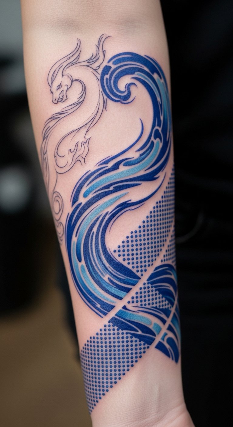 Mix styles with blue elements. Start on your arm. Find hybrid examples online. Combine sketches yourself. This is a free step. Keep it balanced for flow. Look for versatile artists. It creates something truly yours.