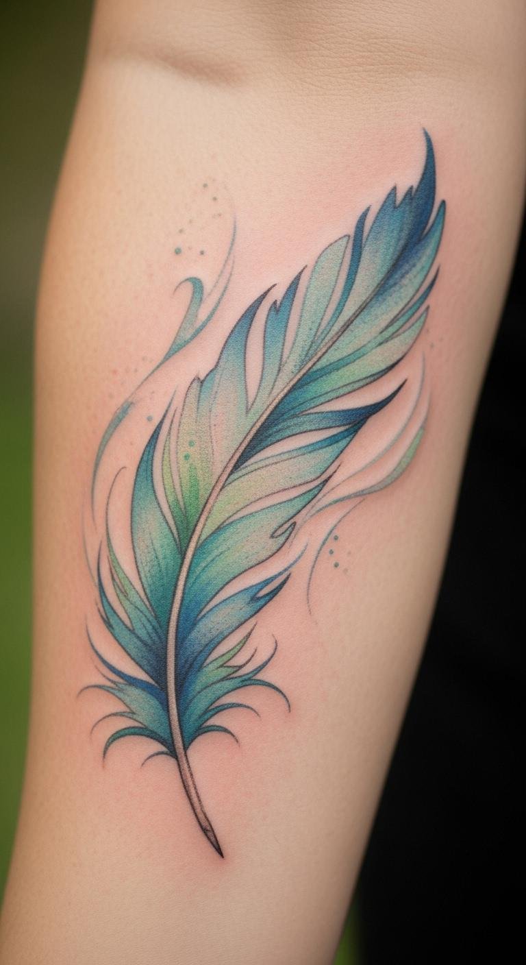 Try a watercolor feather on your arm. It flows like art. Search free images for ideas. Paint your own with watercolors on canvas first. This style pops with casual outfits. Budget options hit $80 at walk-in shops. Mix colors to match your wardrobe. Hide it under long sleeves if needed. Care involves gentle washing early on. Test with washable markers on skin. They wash off easy and save money. Build layers for a fuller effect over time.