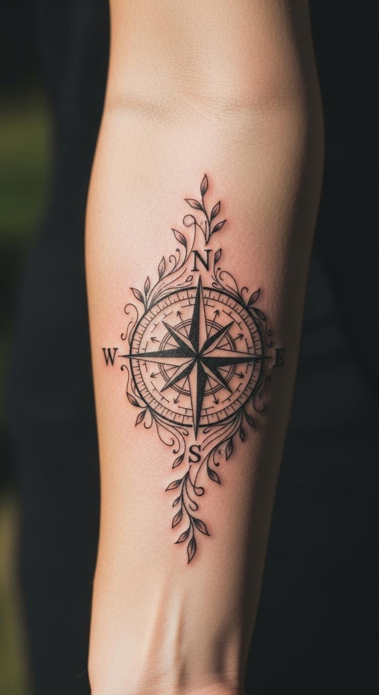 Guide with a compass on your forearm. It points journeys. Compass maps online. Etch on maps first. This ink navigates style. Fees at $80. Find app-based bookings. Vine the edges. Bandage for protection. Use sticker compasses as previews. They point and peel.