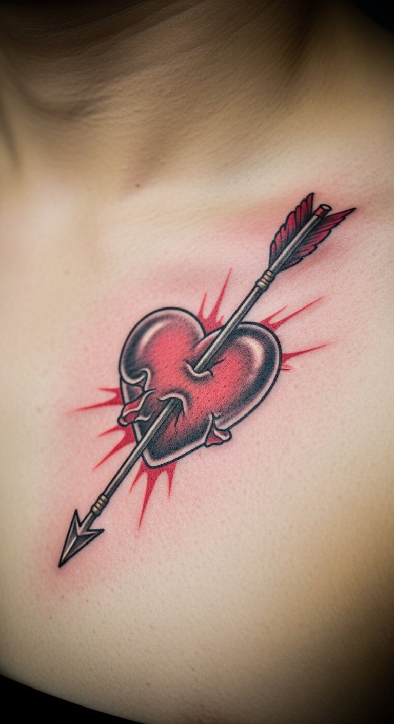 An arrow through heart design speaks love and passion. This one pierces a heart with a straight shot. Short elements make it romantic. It draws from old stories. Spot it on your chest for personal feel. Save money with at-home stencils. Print free ones online. Try henna versions first. They fade fast. Look for sales at local parlors. Add simple colors like red. This fits date nights. It reminds you of bonds. Keep details minimal. Share with a partner. You’ll find it heartfelt soon.