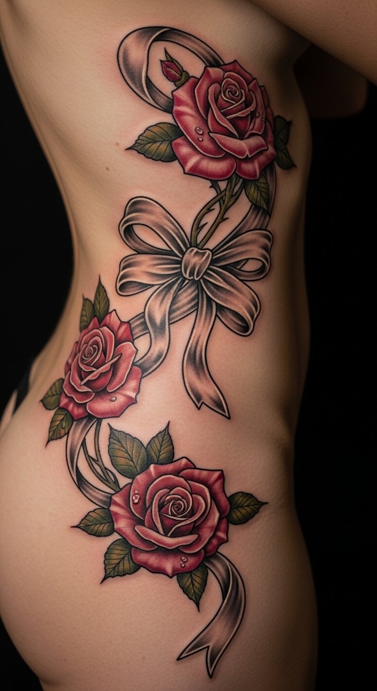 Elaborate bow with roses mixes beauty and aim. This design adds blooming flowers. Short petals enhance. It means love’s pursuit. Put it on your side for flow. Budget: Draw roses from books. Free flower templates online. Try garden sketches. Find floral artists cheap. Keep colors vibrant. This fits romantic times. It evokes passion. Share ideas. You’ll bloom with it.