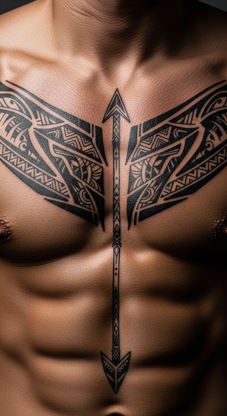 Tribal arrow pattern draws from roots. This design weaves patterns in. Short motifs add heritage. It means identity. Spot it on your chest for heart. Budget: Sketch patterns from books. Free tribal resources online. Try cultural stickers. Find ethnic artists low-cost. Keep it authentic. This fits cultural events. It honors lineage. Share your background. You’ll connect deeper.