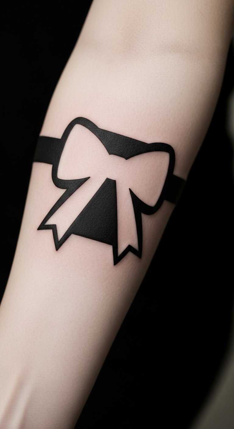 Negative space bows create a clever twist with empty spots for depth. This style makes the bow stand out through what’s not inked. Try it on your forearm for a modern edge. Search for artists with negative space experience at affordable rates. Draw outlines on paper and erase parts to mimic the effect. It’s a simple way to plan ahead. Negative space design offers a unique flair. Position it where you can admire it daily. Aim for a short session to save money. Customize by adjusting the spaces to fit your taste. The design requires minimal aftercare for longevity.