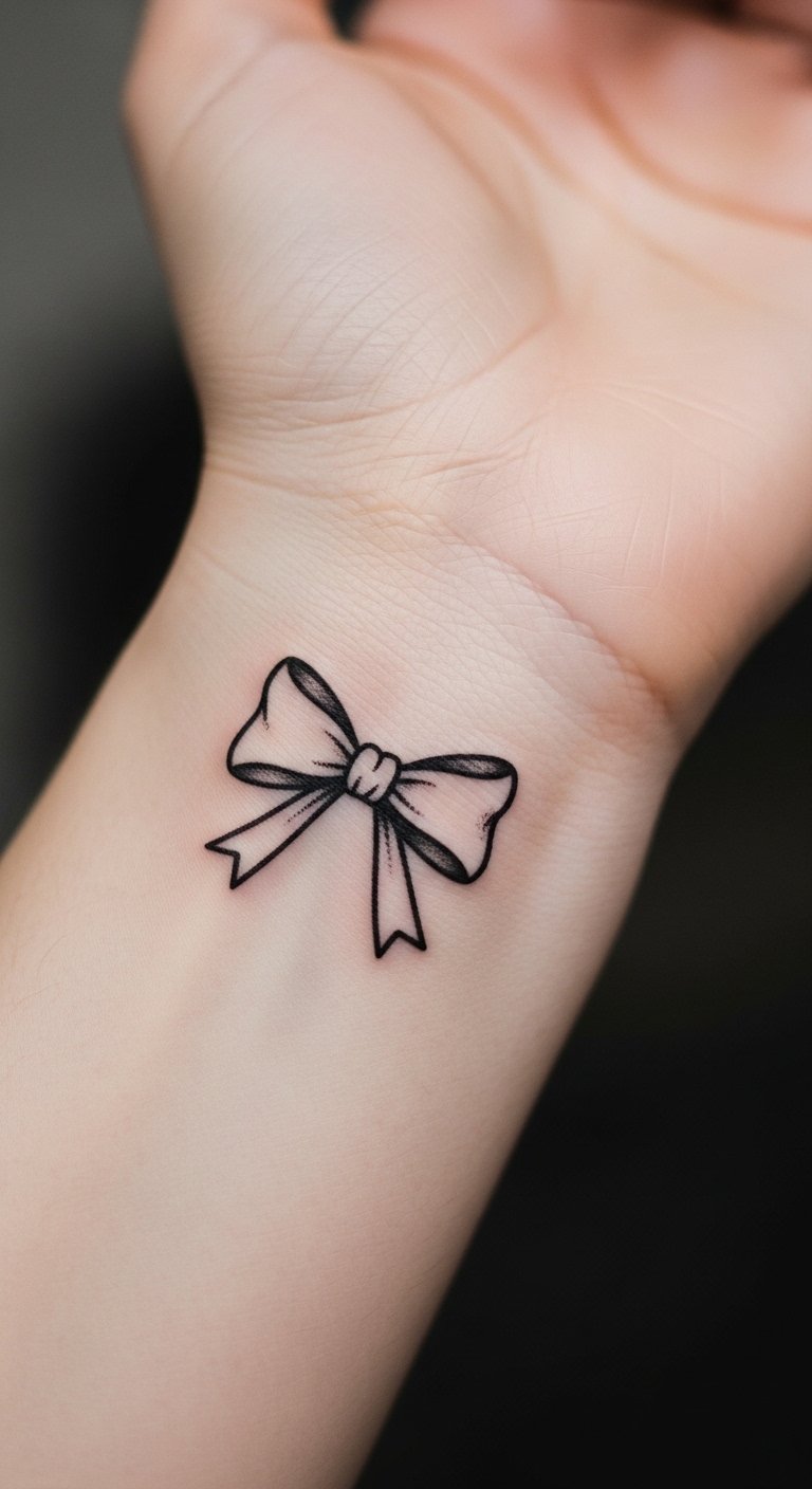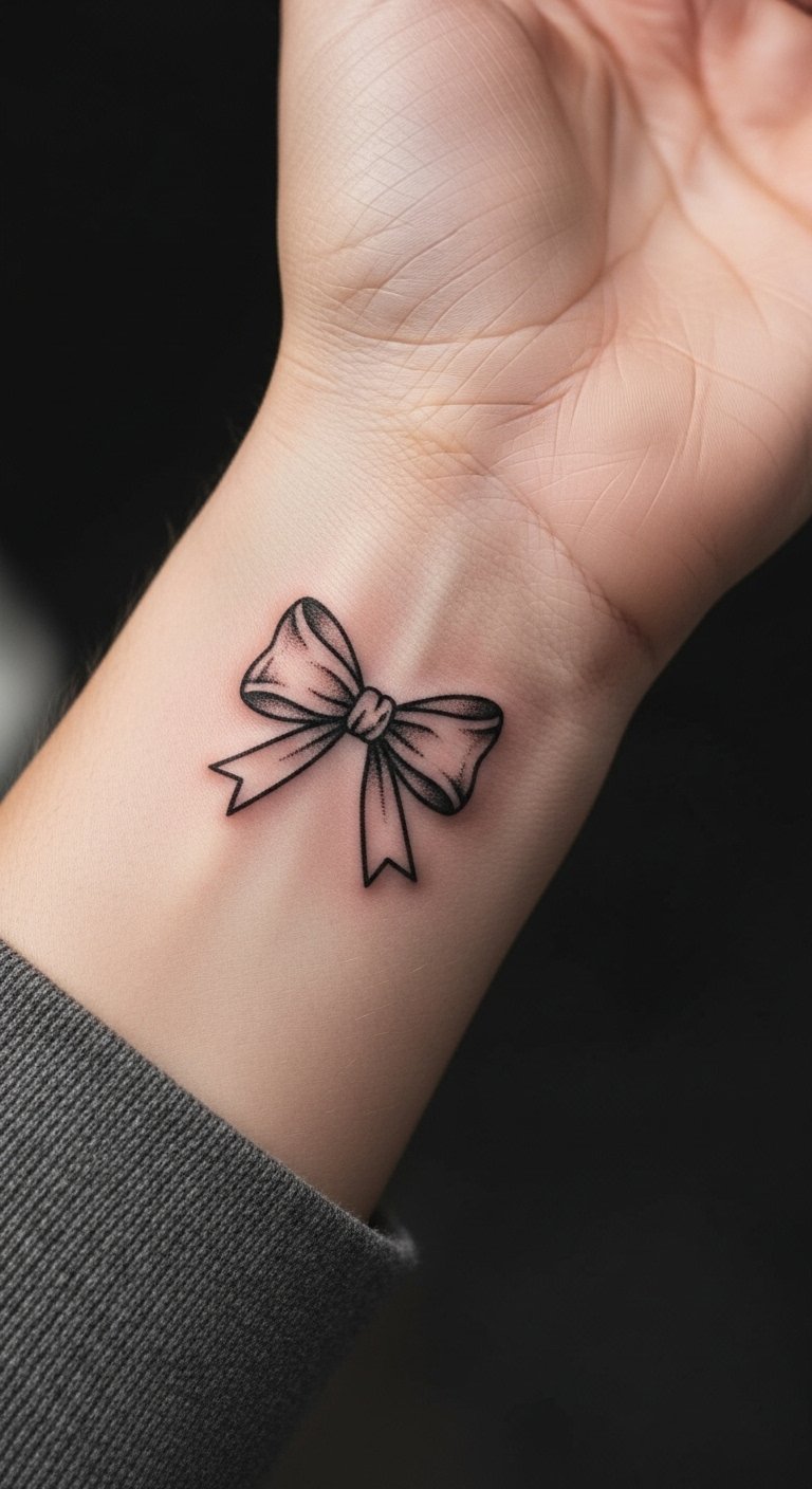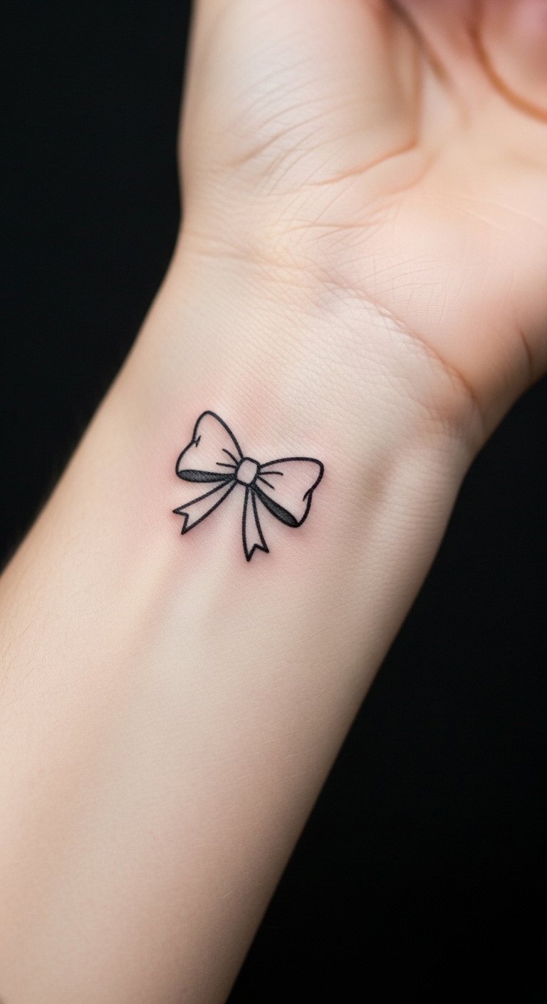 First-time bows start simple and easy. This design eases you in. Use a wrist for beginners. Find beginner-friendly artists cheaply. Draw basic ones. It builds confidence. First-time bow tattoo begins journeys. Select easy options. Opt for quick visits. Add personal flair. Care starts simple.