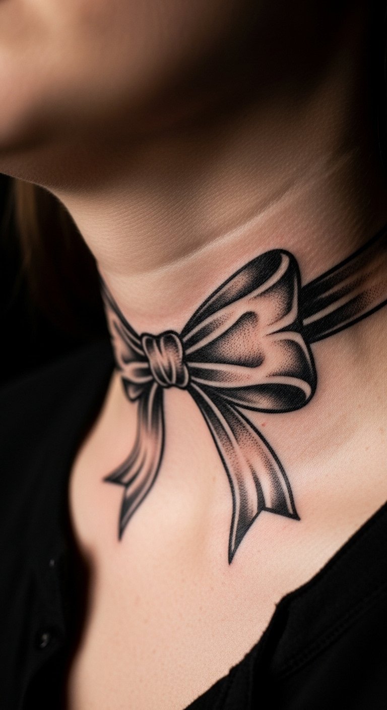 Neck bows make a strong impression with their visibility. This spot demands attention. Choose a design that matches your confidence. Find budget-friendly artists for this. Sketch ideas on your neck with washable markers. It aids decision-making. Neck bow tattoo boosts your presence. Go for sizes that work for you. Book accordingly. Add unique elements. Care with clothing to preserve it.