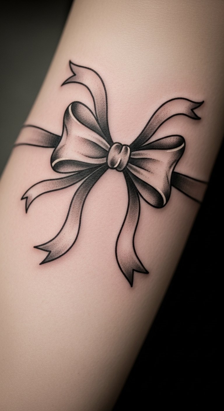 Think of a minimalist black-and-gray bow as your go-to for subtle charm. This design keeps things straightforward with just a few lines and shades. It fits anyone wanting a low-key option. Start small on your wrist for easy hiding or showing. Pick a local artist who specializes in fine lines to keep costs under $100. For a DIY feel, sketch ideas on paper first with a black pen. This helps you visualize the look without rushing in. Black-and-gray bow tattoo works well for daily wear. Mix it with your outfits for a polished edge. Go for a single session to save time and money. Add a personal twist by choosing a bow shape that reminds you of a favorite accessory. Keep it simple to avoid extra pain or upkeep. This style lasts for years with basic care like sunscreen.