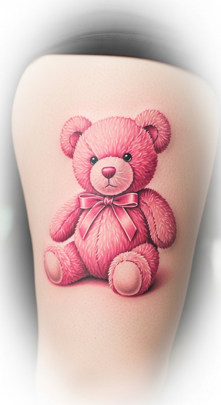 This bear design hints at deeper show moments. Keep it cute and compact. Color it in with crayons on paper first. It’s a zero-cost start. Use fabric markers for a washable skin version. They last a few days. Find artists offering deals for $90 or less. Opt for pastel shades to save on ink. Place it on your leg for coverage options. Add water effects around it. This idea invites personalization. Sketch variations quickly. Make it meaningful without much hassle.