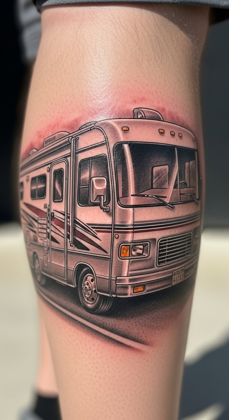 The iconic RV brings adventure to your skin. Draw it on cardboard with markers. No expense needed. Make a sticker version with clear tape and markers. It peels off neat. Find vehicle-themed artists for about $75. Keep details basic. Put it on your calf for mobility. Add wheels for fun. This idea travels well. Sketch routes first. Enjoy the journey.