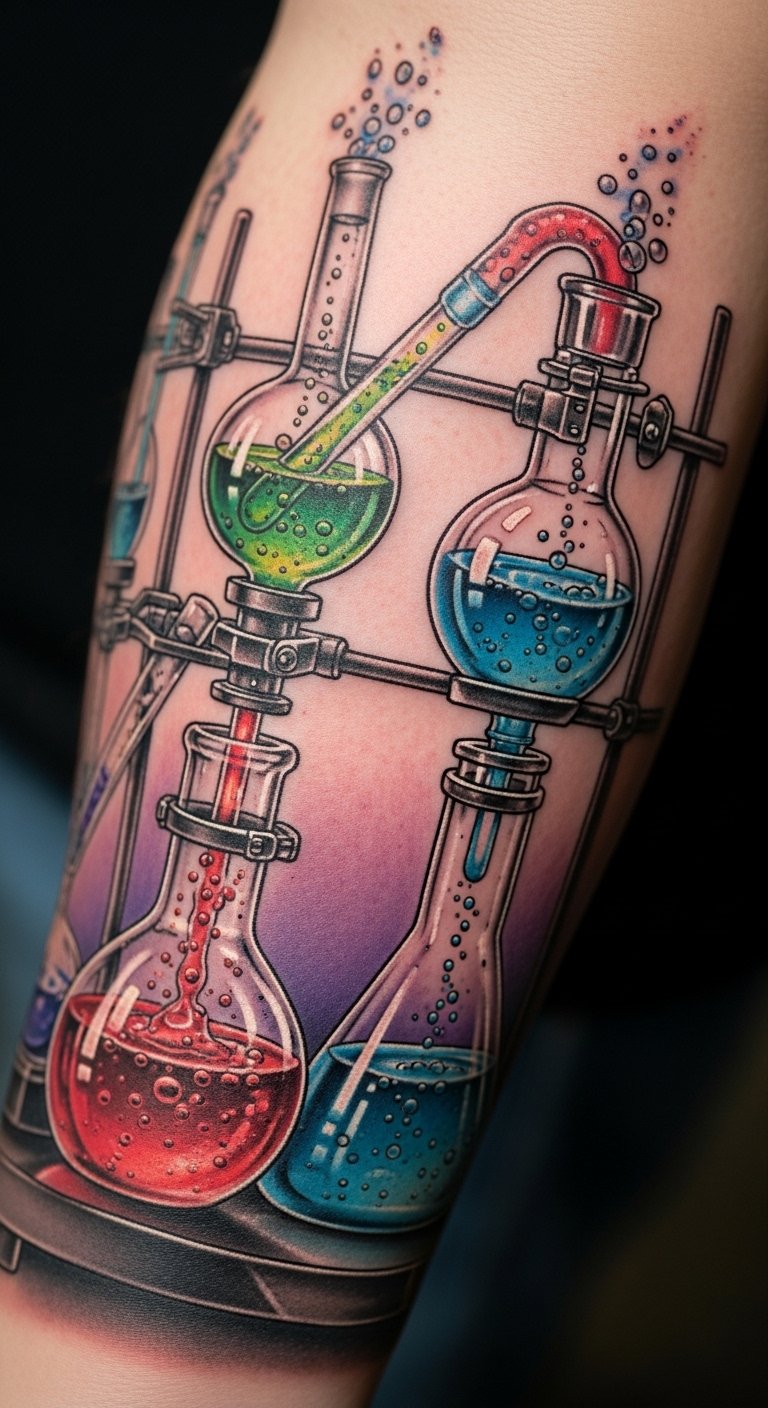 Lab tools add a scientific edge. Outline them on paper with pens. Quick and free. Use nail polish for a removable version. It dries fast. Artists charge around $85 for sets. Opt for outlines only. Place on your forearm for functionality. Include bubbles for effect. This design educates. Test layouts simply. Make it your lab.