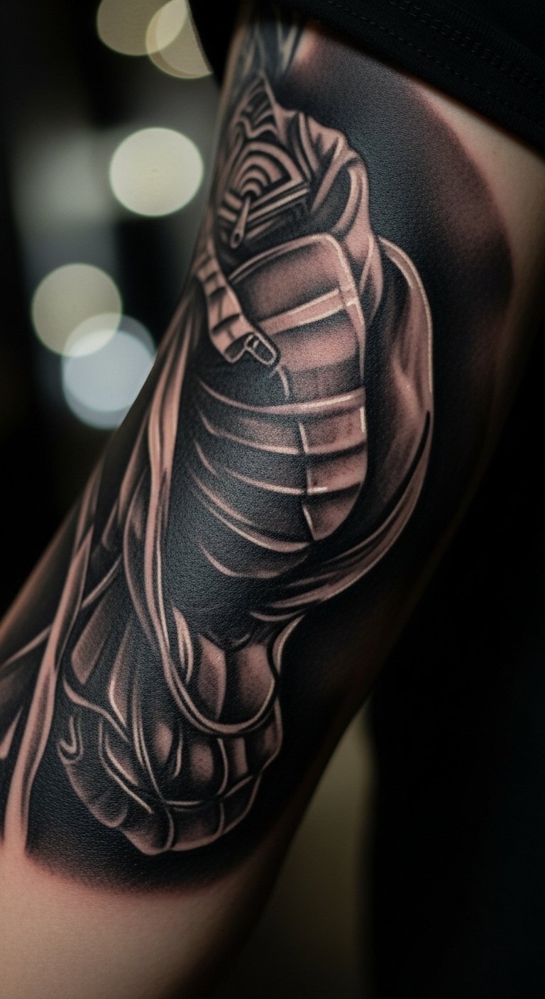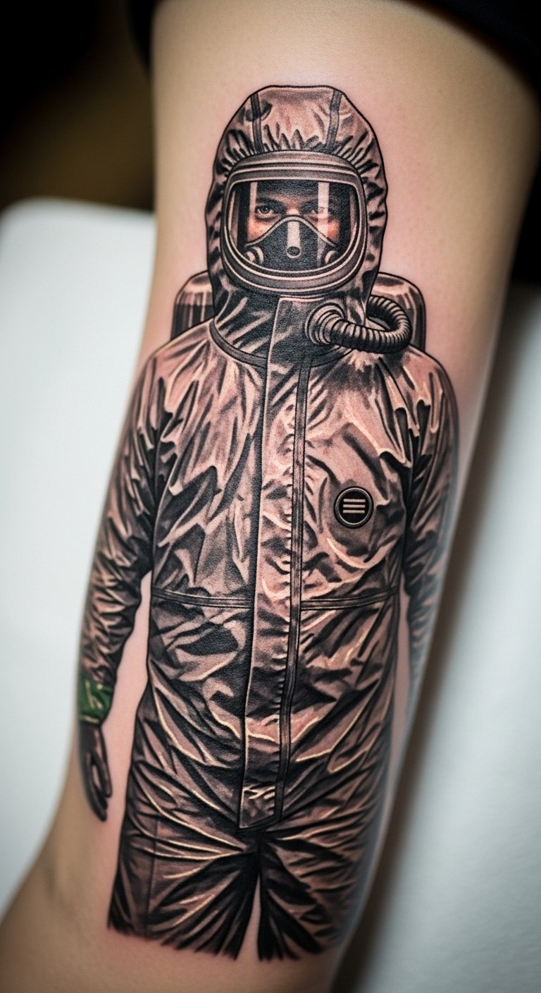 The suit design highlights caution. Outline on paper quickly. No cost. Use body stickers for practice. They remove clean. Look for gear-themed ink at $75. Opt for clean lines. Put on your arm for protection feel. Add warnings subtly. This idea protects. Sketch suits fast. Keep it safe.