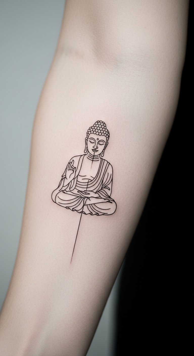 Stick to linework for a clean Buddha. Just flowing lines keep it straightforward. Wrist works well here. Line tools in apps make planning easy. Line stickers cost little. Basic sessions start at $60. Trace lines for practice. This tattoo is ideal for minimalists.